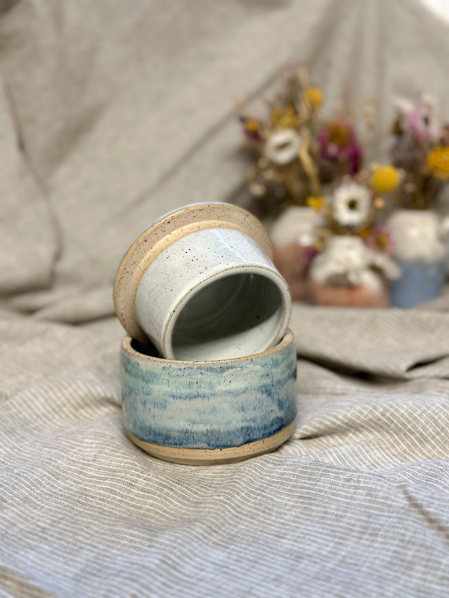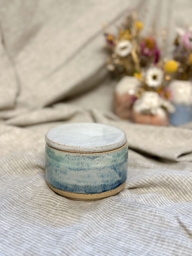 Geeignet für ca. 180–240 g Butter (Füllmenge variiert leicht). Jede Butterdose ist ein Unikat und kann in Farbverlauf sowie Details leicht vom dargestellten Produktbild abweichen. Heller Spots mit bzw. ohne Spots. Spülmaschinengeeignet.