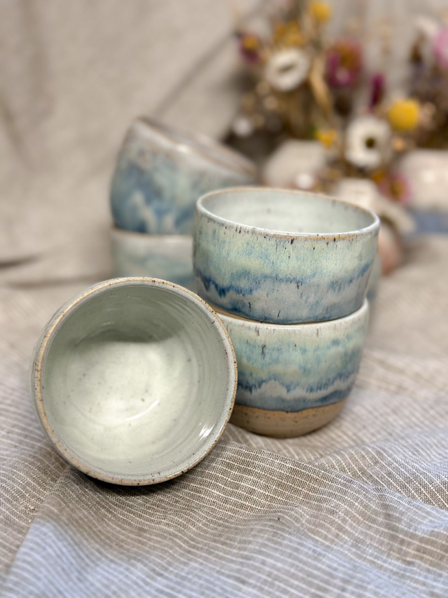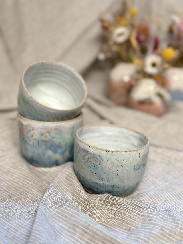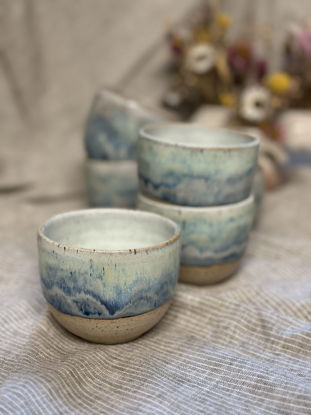Handgefertigter Keramikbecher aus Steinzeug mit wunderschönem Grün-Blauverlauf. Mit oder ohne sichtbarem Ton.